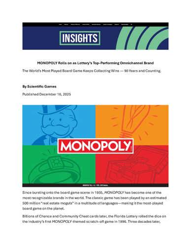 MONOPOLY Rolls on as Lottery’s Top-Performing Omnichannel Brand